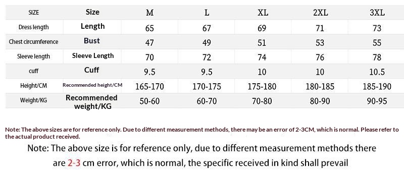 Sizes: M, L, XL, 2XL, 3XL