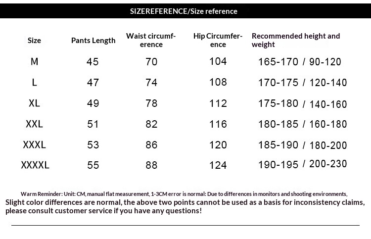 Sizes: M, L, XL, XXL, XXXL, 4XL