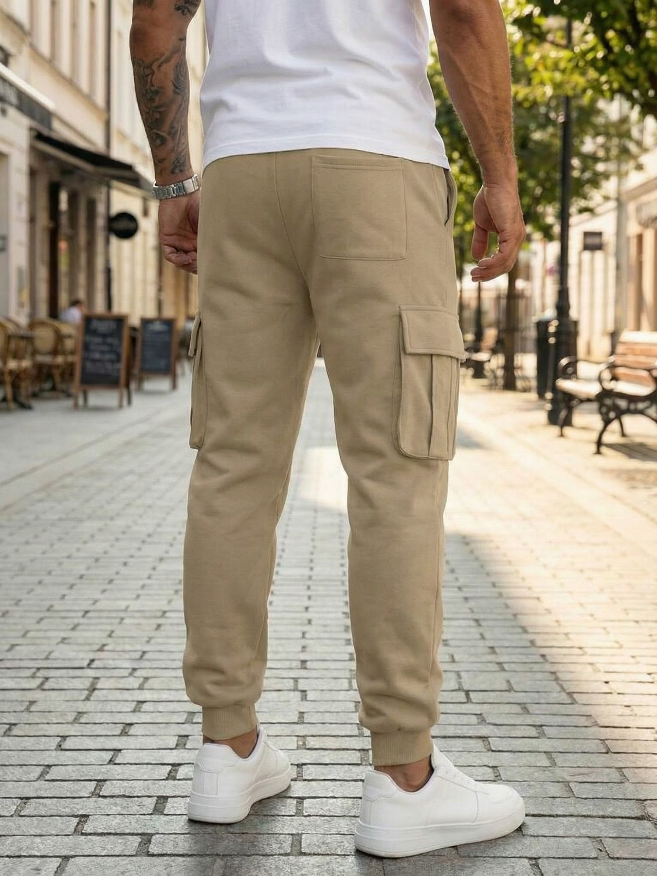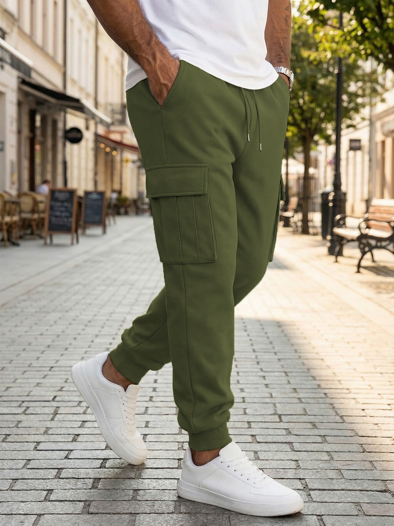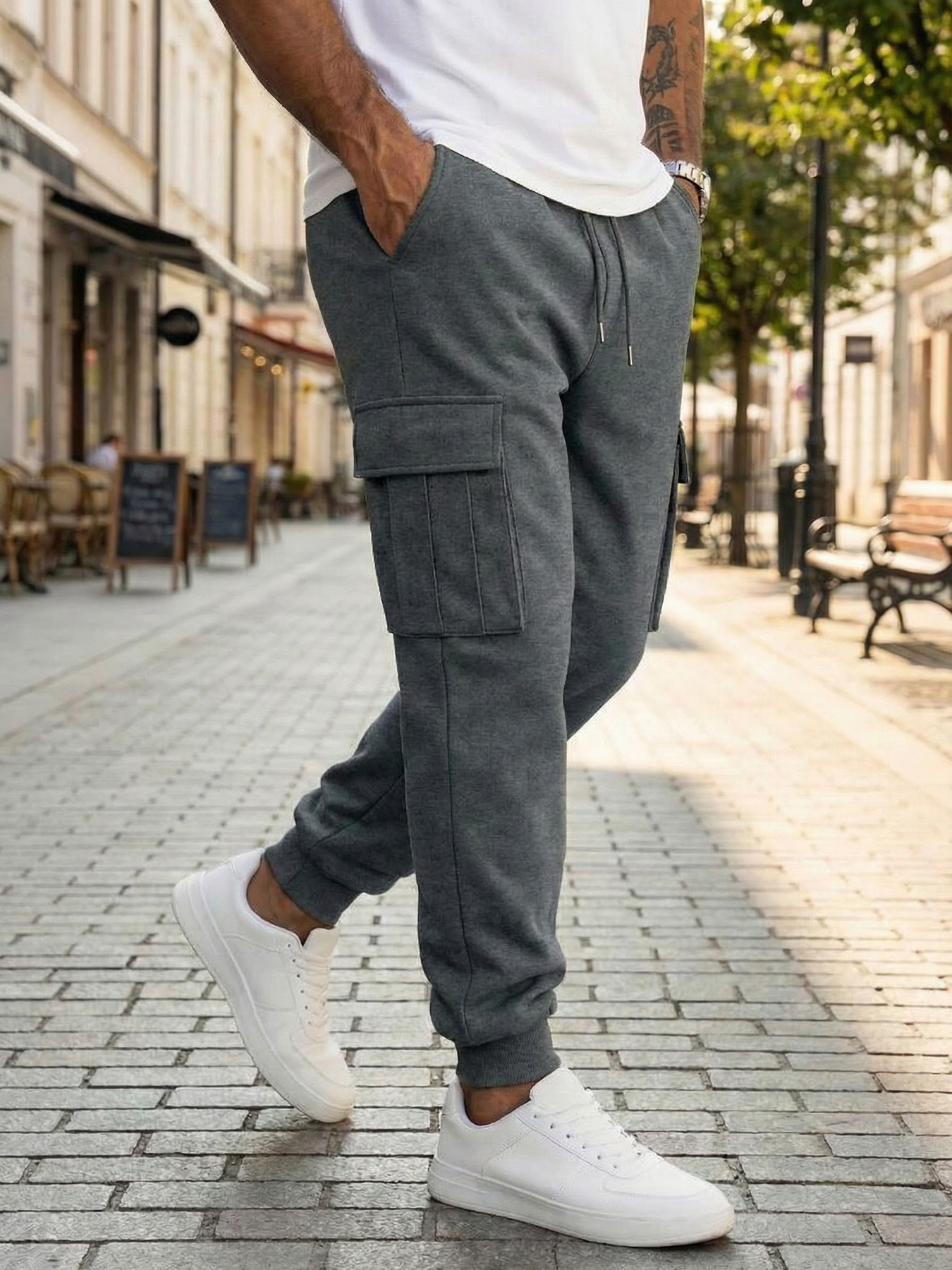 Mens Casual Workwear Pants With Multiple Pockets And A Drawstring