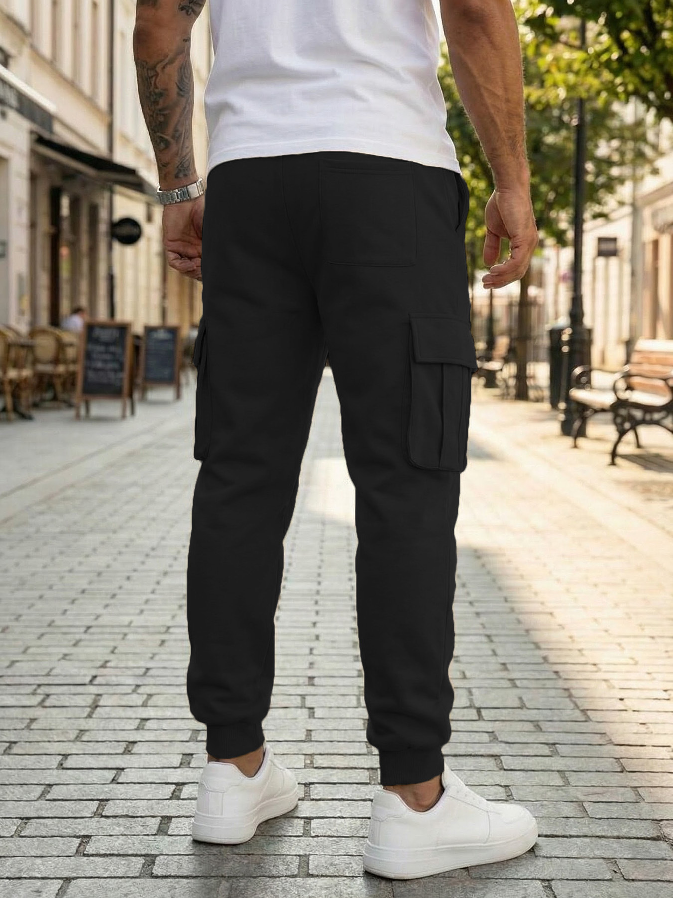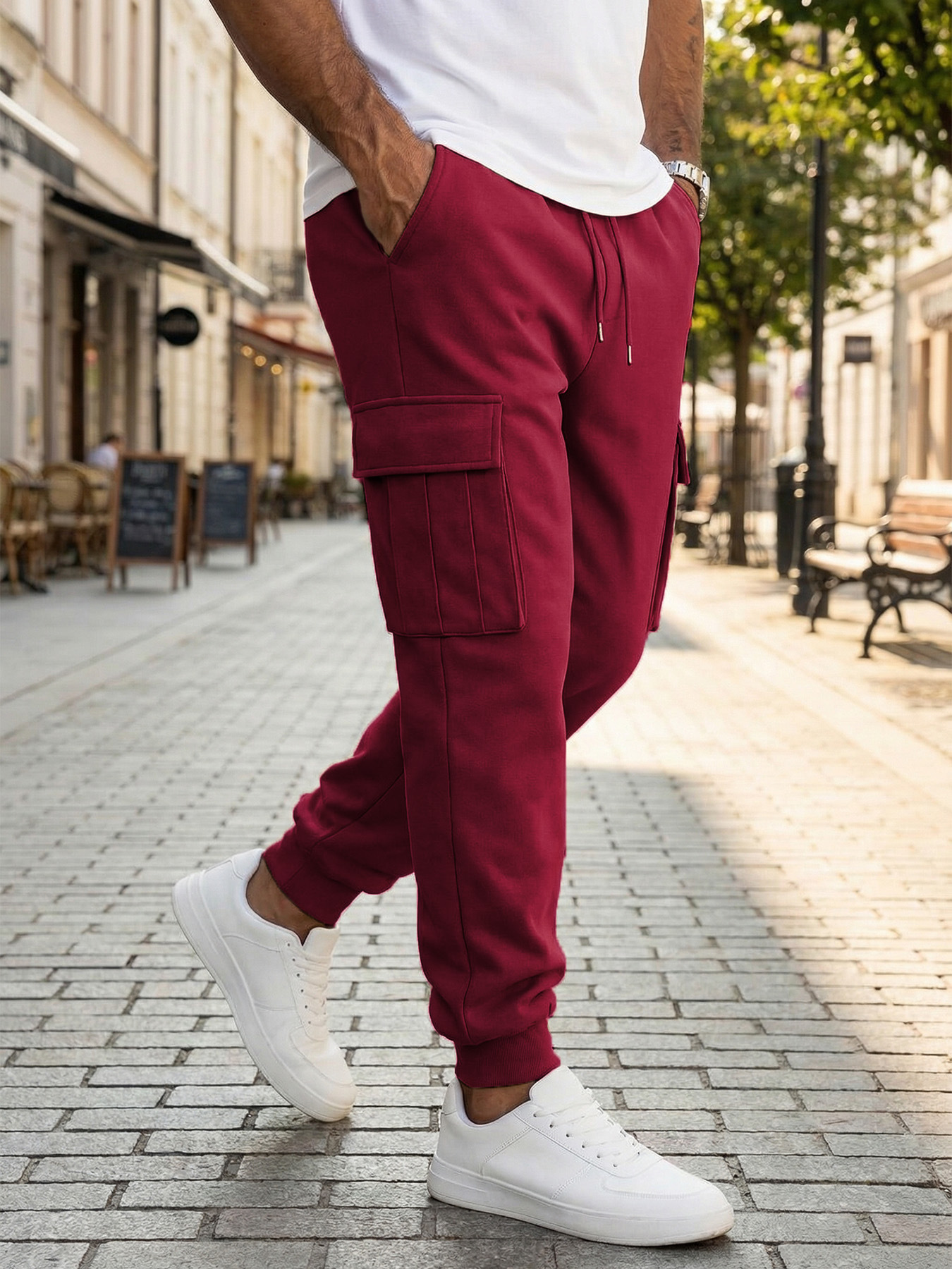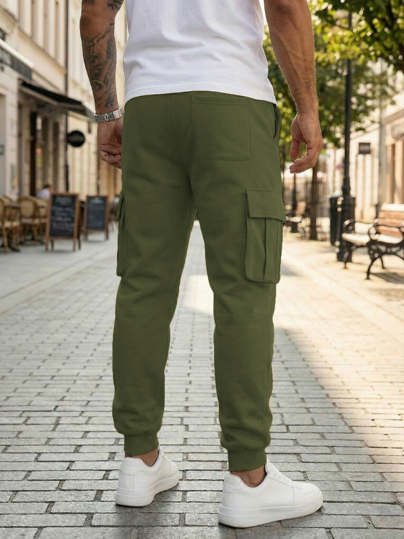 Mens Casual Workwear Pants With Multiple Pockets And A Drawstring