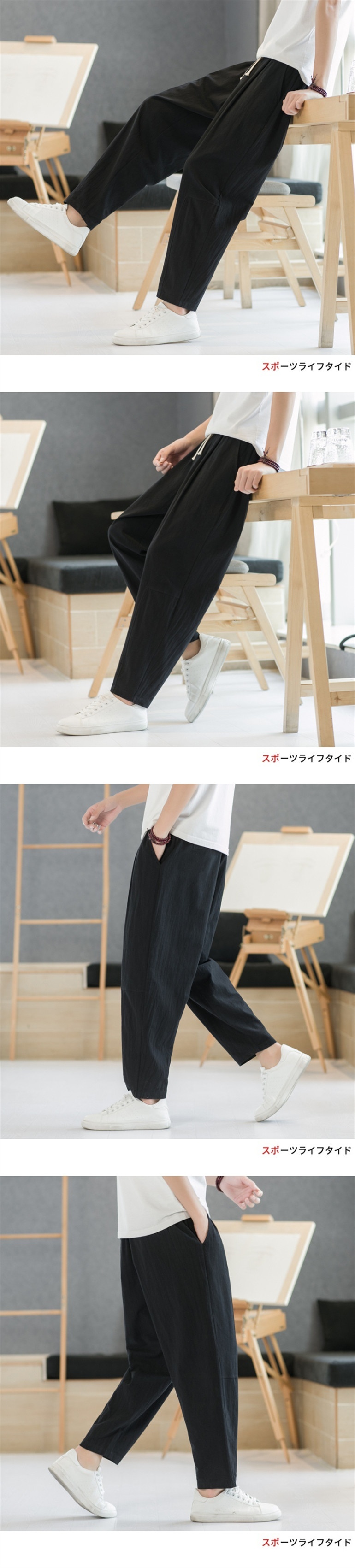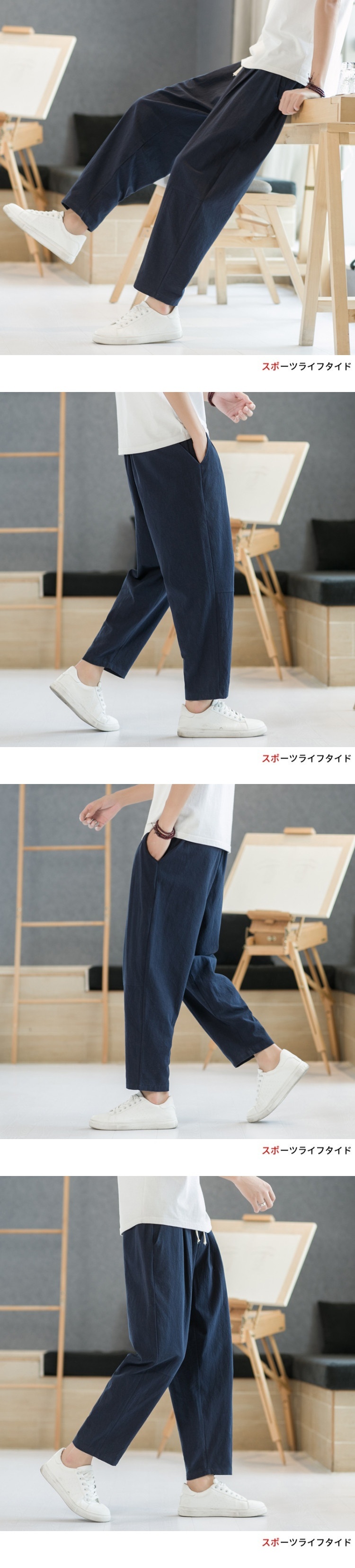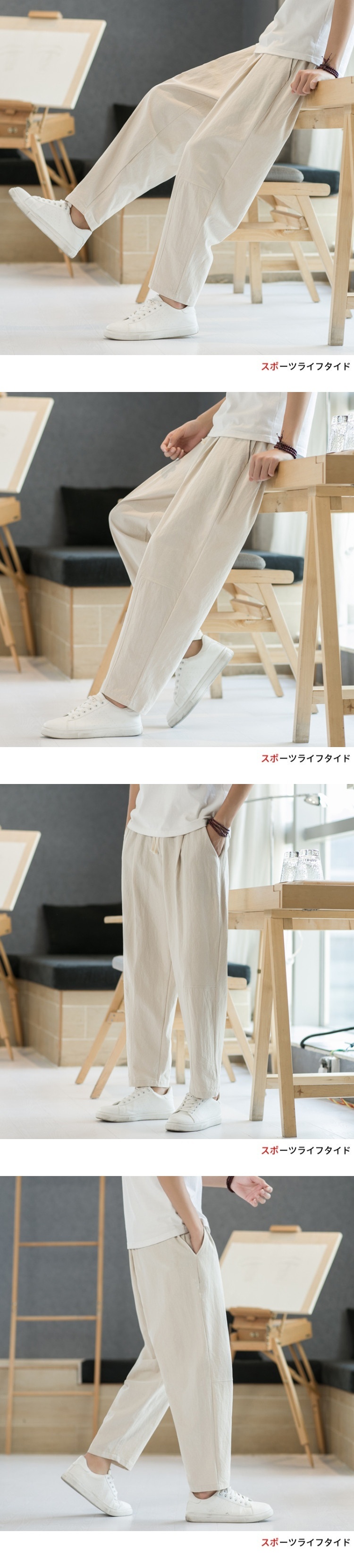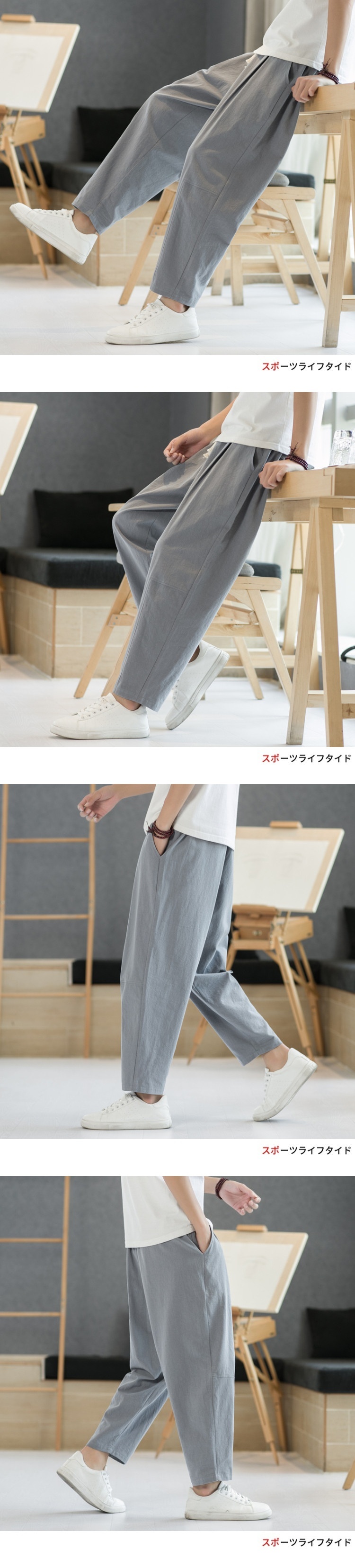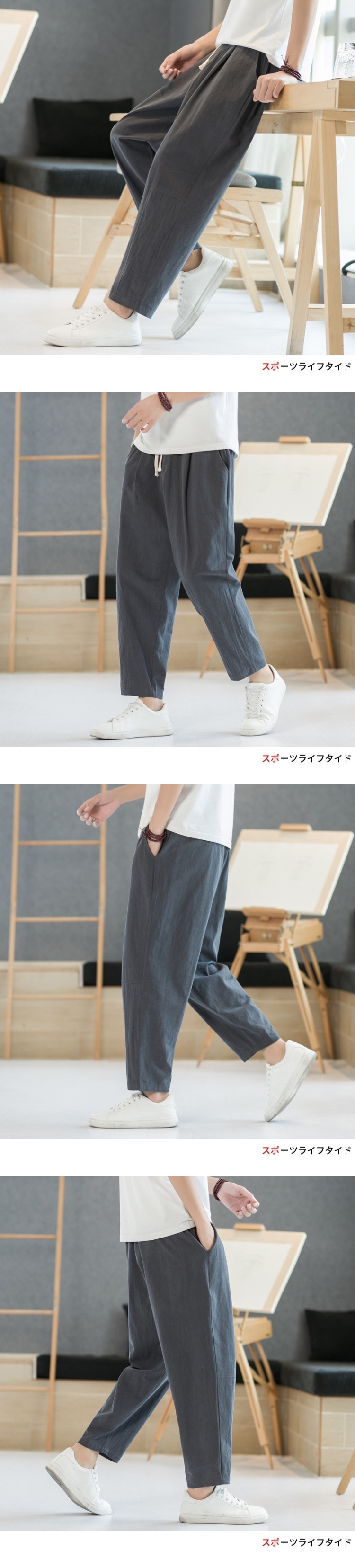 Mens Cotton-linen Relaxed-fit Straight-leg Casual Pants