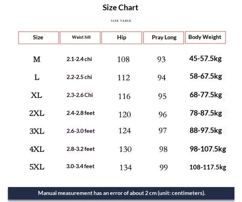 Sizes: M, L, XL, 2XL, 3XL, 4XL, 5XL