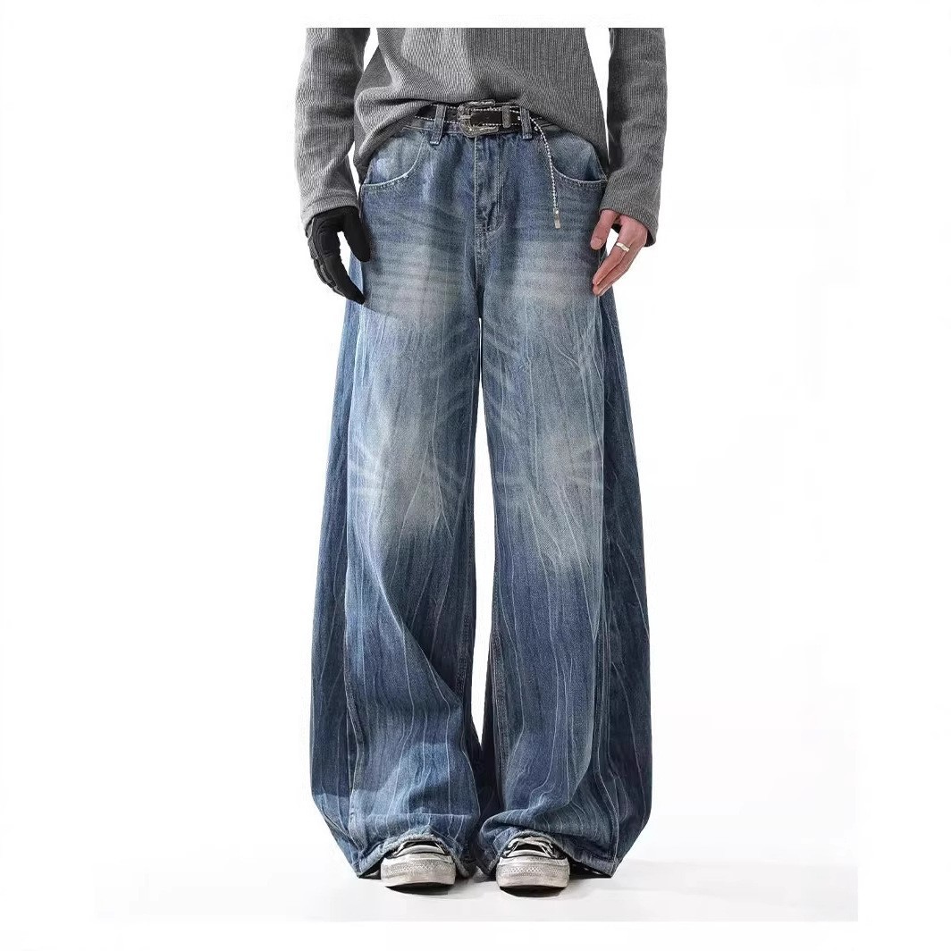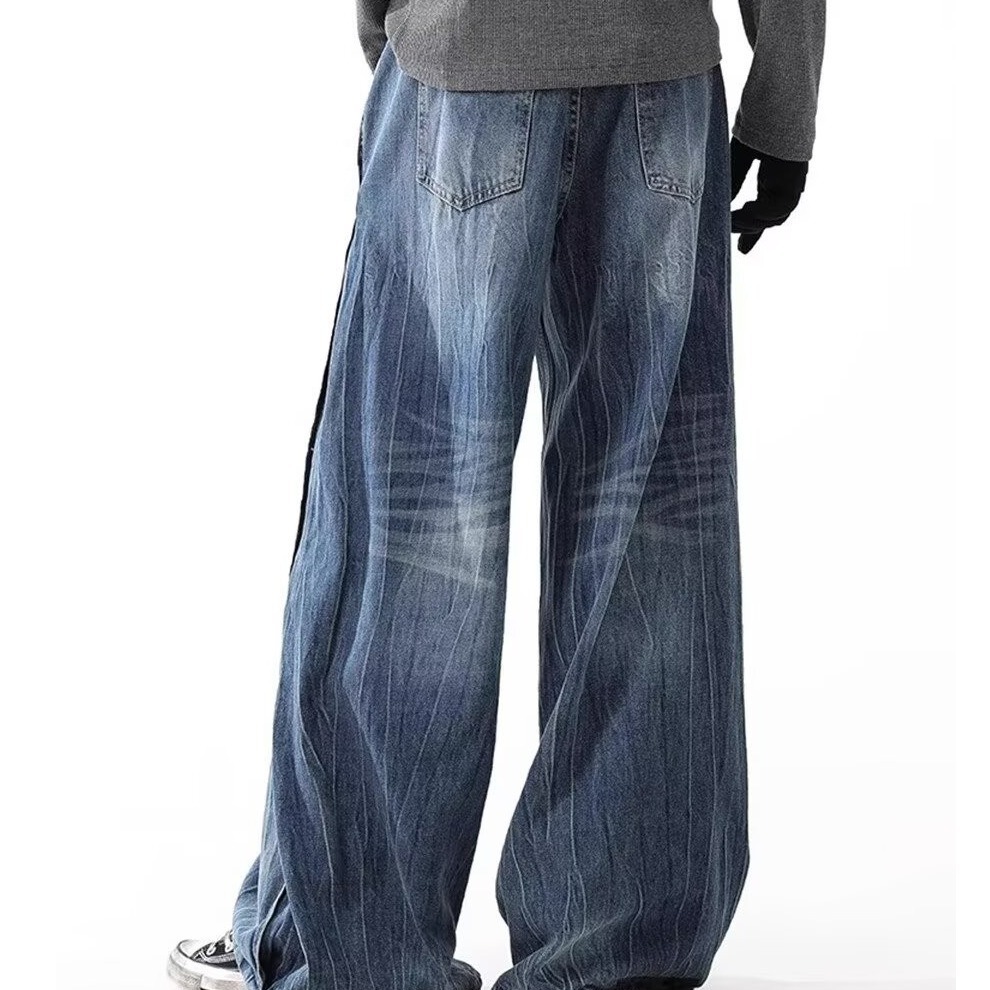 Mens SpringAutumn Washed Lightning-Stripe Jeans